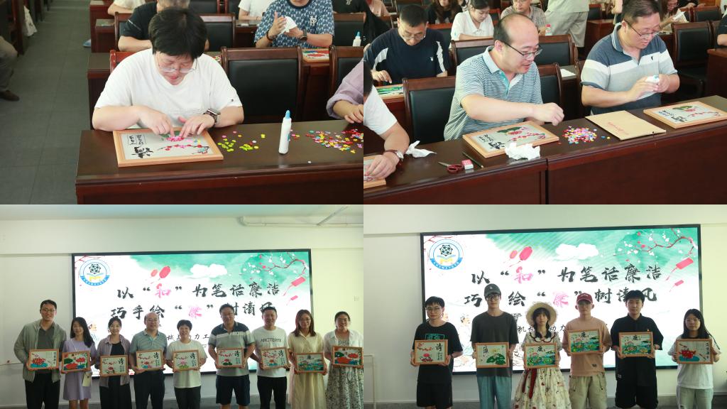 教师与学生党员有序落座,将不同颜色的扣子仔细粘贴于纸板上,描绘出莲花、寒梅等形状,通过“廉洁扣”板绘的艺术形式将廉洁的理念生动形象地展现出来。在构思和粘贴“廉洁扣”的过程中,教师与学生党员聚精会神,全神贯注,投入作品的制作当中,深入思考廉洁的内涵。